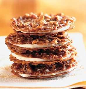 Pecan Lace Sandwich Cookies with Orange Buttercream