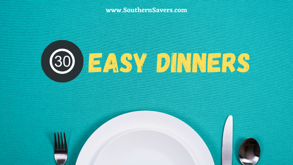 I recently heard an idea to make a list of meals that you find easy to make and that most of the people in your family like. You don’t have to eat these meals over and over again, but it’s great to have a list to reference when you’re drawing a blank. So here are my 30 easy dinner ideas. These are things my family enjoys and that I find simple to make. Not all of these may make your list, but I encourage you to come up with your own. You can use my list for inspiration!