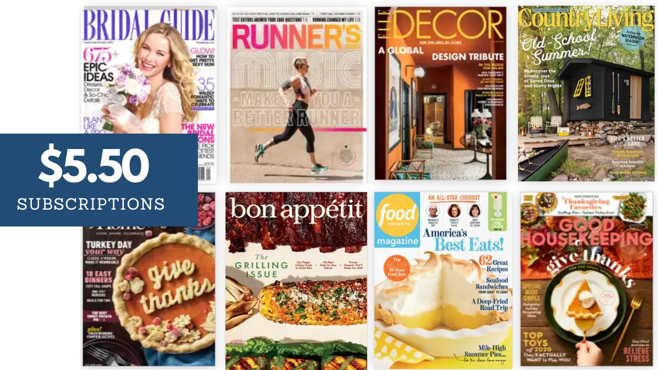 Home > Household Deals > $5.50 Magazine Subscriptions| Bridal Guide, Country Living, Taste of Home