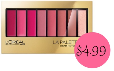 paletteThis week and next week you can get a fun deal on an entire palette of lip colors at CVS!! The L’Oreal La Palette lip palette is included in a ExtraCare deal that is running through 8/20 so grab it now or wait till next week.  When you buy $15 in L’Oreal products you get a $5 reward back.