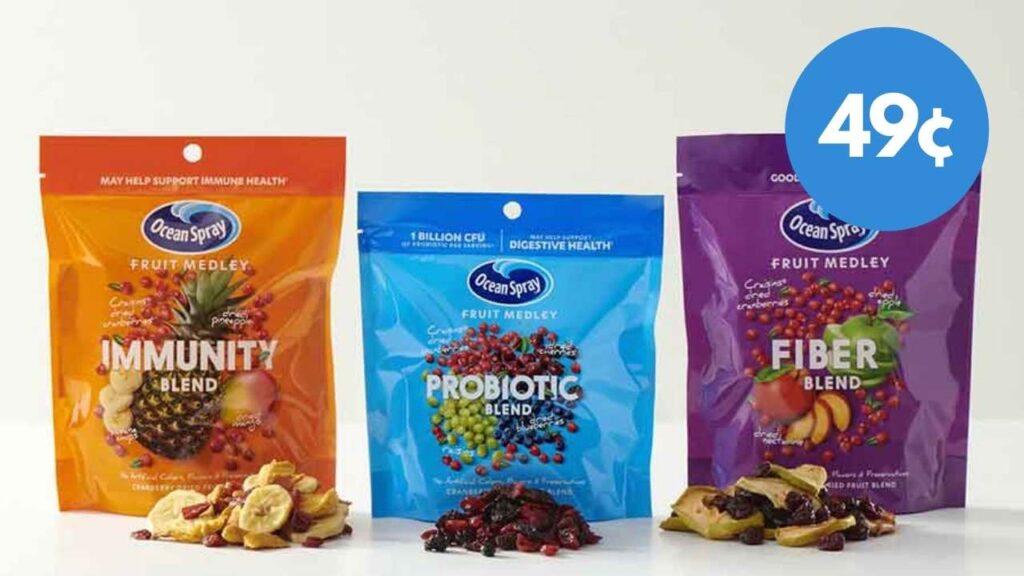 Use Ibotta at the Kroger Mega Event this week to get Ocean Spray Fruit Medleys for only 49¢!  Choose from Immunity, Probiotic, or Fiber Blends, and pay almost nothing for this good-for-you snack!