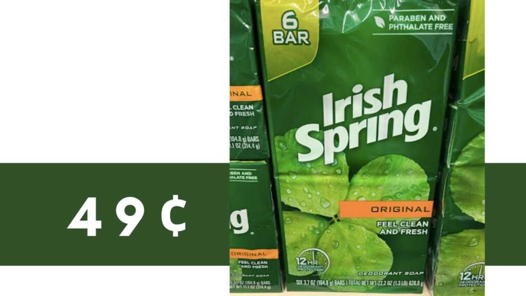 - Irish Spring Soap $2.49 (41¢ Per Bar) at Walgreens