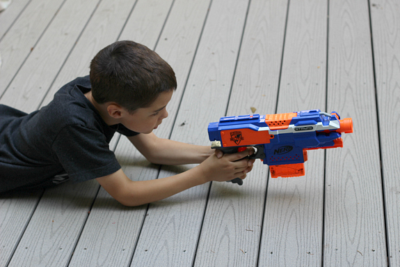 If your kids end up using water guns to shoot each other and that leads to conflict, use this idea to set up a shooting range so they can practice their skills on inanimate objects!