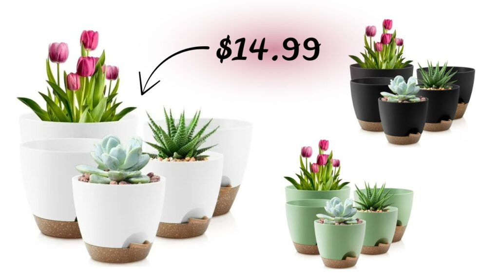 Score a 5-Pack of Self-Watering Plant Pots in assorted sizes for as low as $14.99 at Walmart. These pots are ideal for any home, office, or patio.