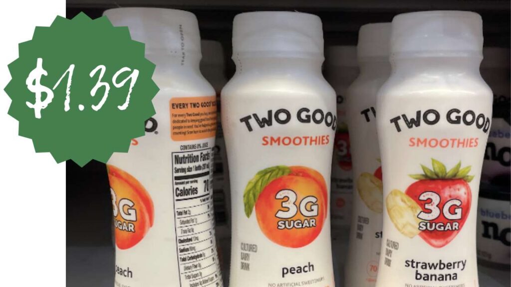 Heads up: if you’re headed into Kroger before this week’s sale ends, use an eCoupon to pick up Two Good Yogurt Smoothies for just $1.39 each. These are great for lunchboxes or an afterschool snack!