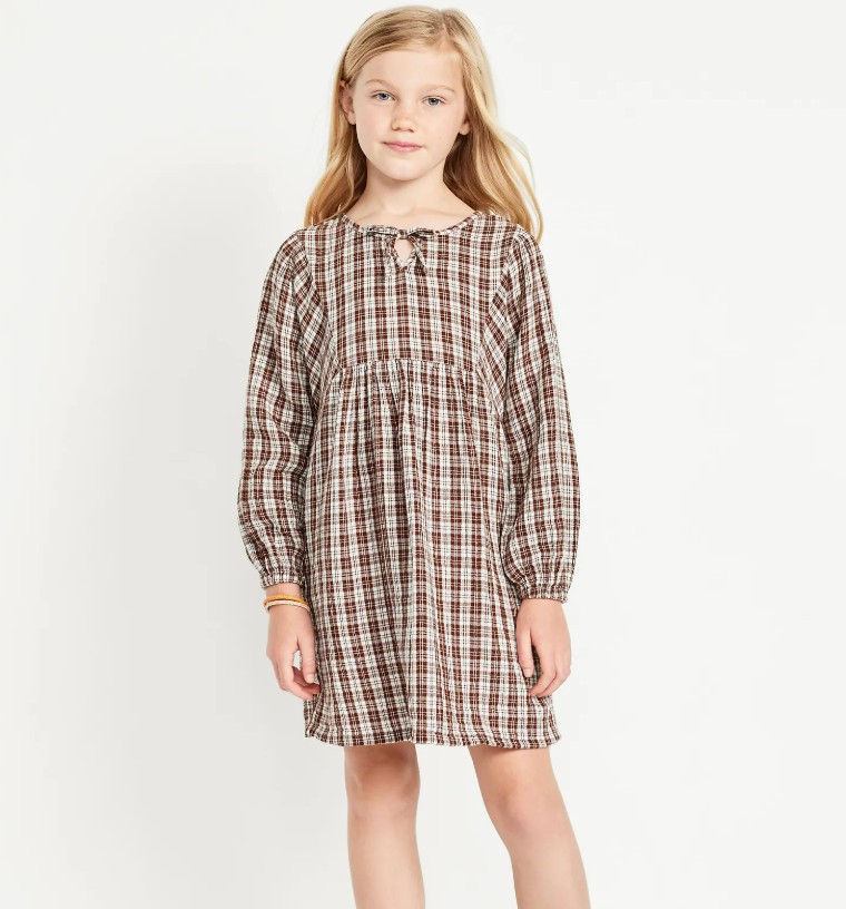Long-Sleeve Tie-Front Double-Weave Swing Dress for Girls – $14 (reg. $35)