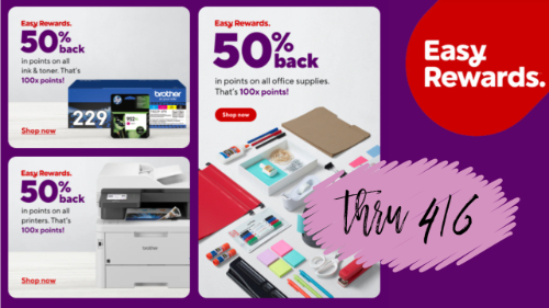 Right now Staples Easy Rewards Members can get 50% back in points on purchases of office supplies, ink & toner, paper, and printers through April 6th! Use this opportunity to stock up on printer paper, markers, or even a new printer! Just note that this deal is not good on Daily Deals or clearance items.