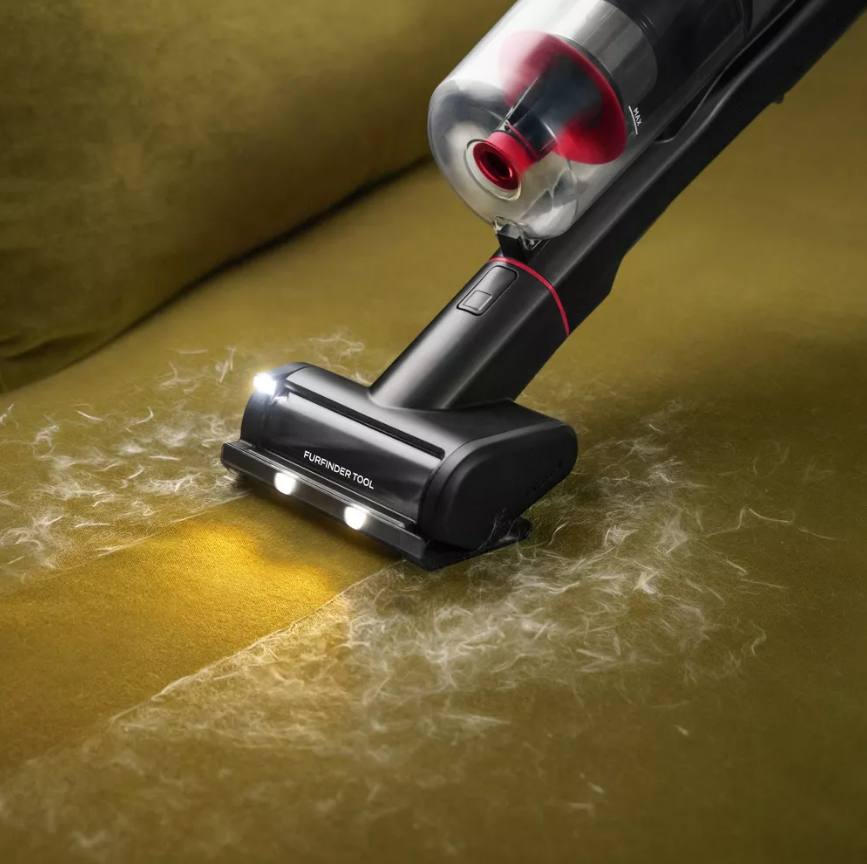Many of the reviews highlight the vacuum’s FurFinder Headlights that illuminate hidden pet hair and fine dust and debris.