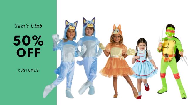 If you still need a costume, speed over to Sam’s Club where they’re offering up to 50% off costumes for the whole family!
