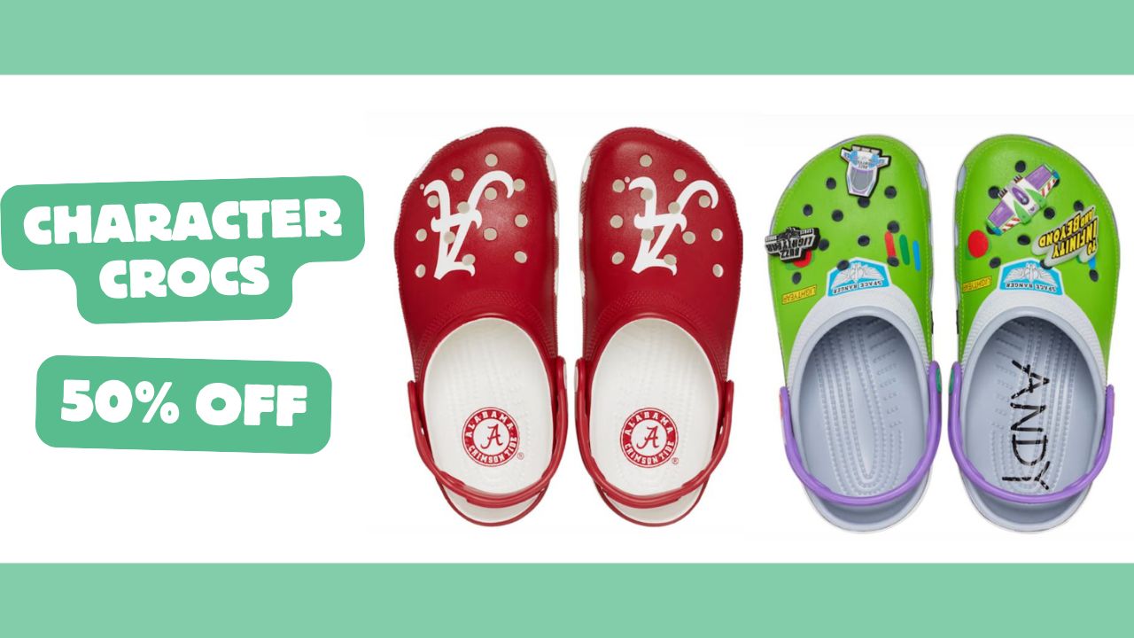 This weekend only, speed over to Crocs where you can score your favorite characters on clogs for 50% off! Get clogs starting at just $15.