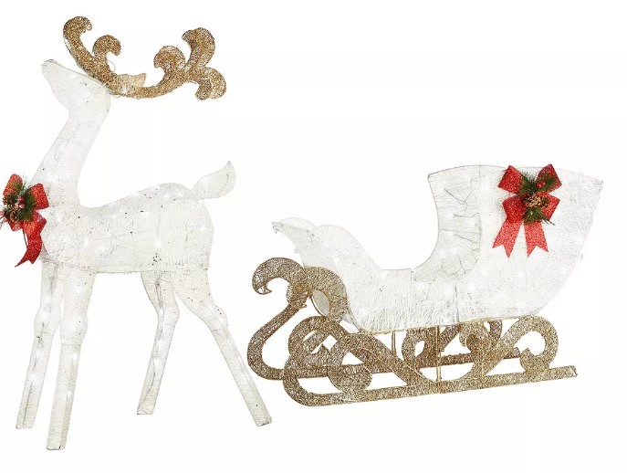National Tree Company Prelit 48″ White & Gold Sisal Reindeer and 24″ Sleigh – $139.99 (reg. $203.99)