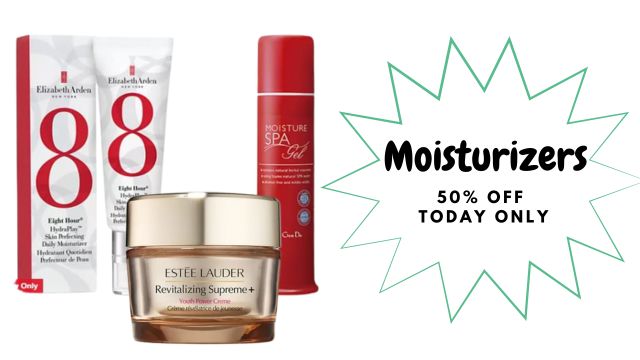 Today only, head over to Macy’s to get 50% off on select moisturizers. As one idea, grab this Elizabeth Arden Eight Hour HydraPlay Skin Perfecting Daily Moisturizer for just $22.50!