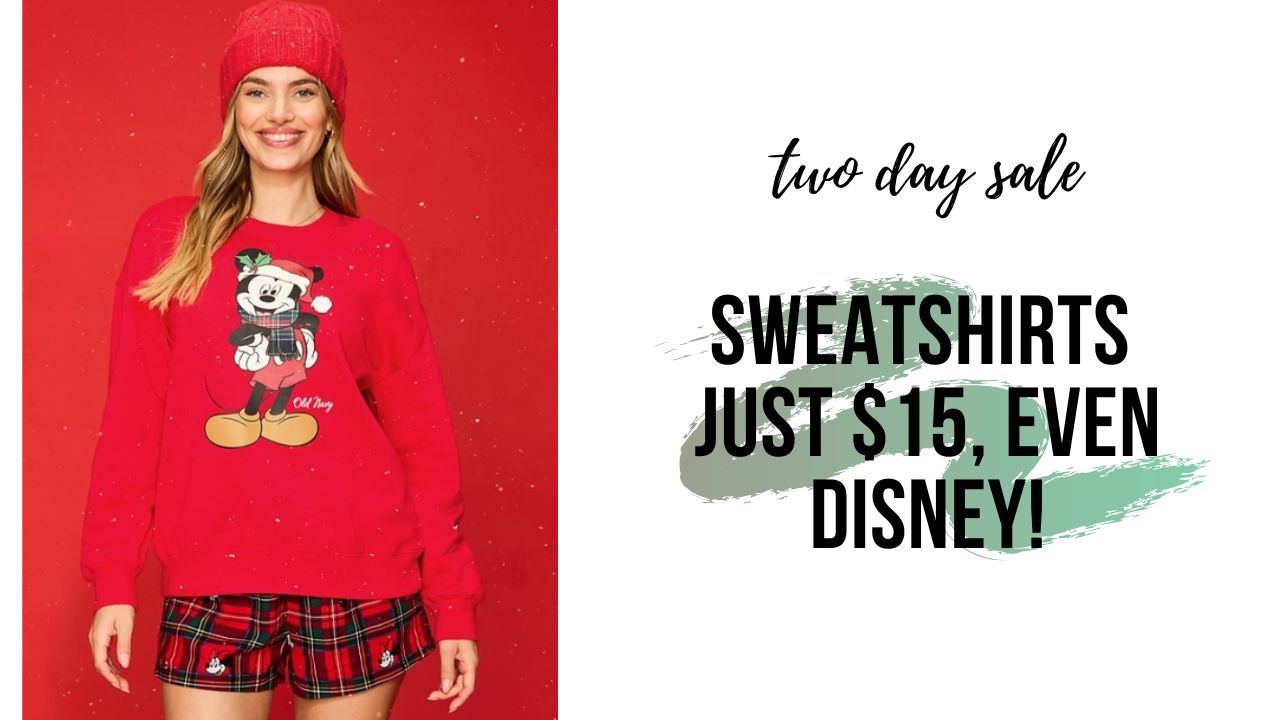 Get adult sweatshirts for $15! They are regularly up to $39.99 ($49.99 for Disney) so this is a huge savings!!