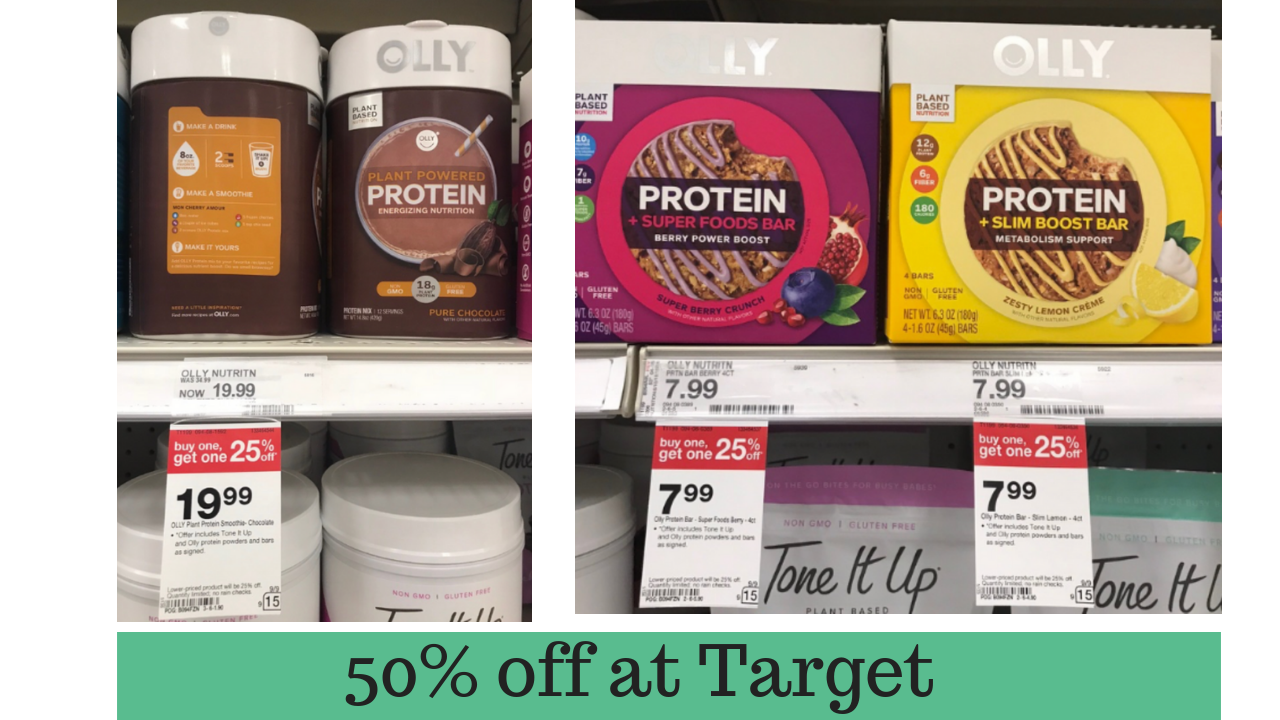 Save on Olly protein products this week at Target. When you pair the current sale with coupons below, it makes them half off!