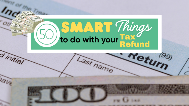 Before I get into my ideas for smart things to do with your tax refund, I need to share the smartest thing about tax refunds: don’t get one! A tax refund essentially means you’ve been letting the government have your money for the past year. If your refund is substantial, consider adjusting your withholdings or figuring out what you actually owe in the coming year. That said, sometimes even when you’re trying not to get anything back, your circumstances change and you find yourself with a substantial windfall this time of year. Here are 50 ideas for what to do with that money (or any windfall!).