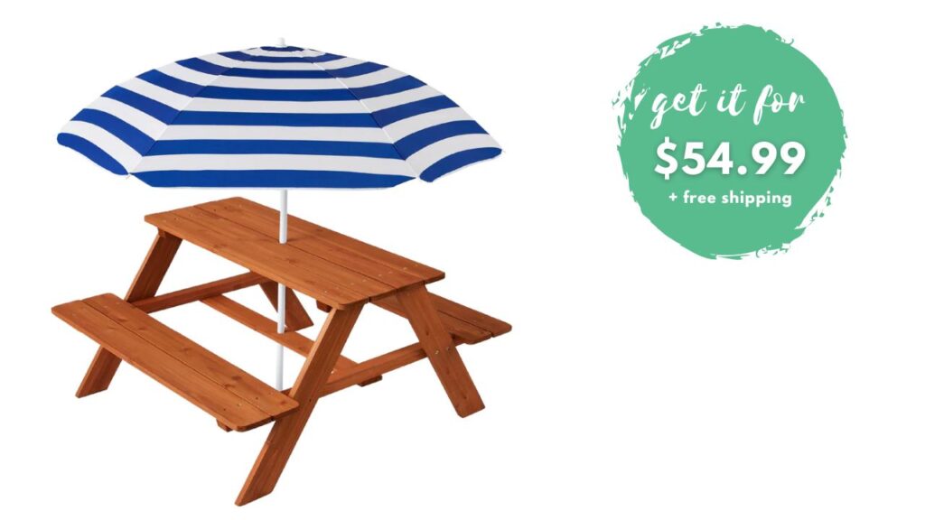 Hurry over to BCP online today to score this Kids Wooden Outdoor Picnic Table with Umbrella for just $54.99 (reg. $90) with code.