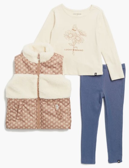 3-Piece Cire & Berber Vest, T-Shirt & Leggings Set, size 6 – $13.63 (reg. $89.50)