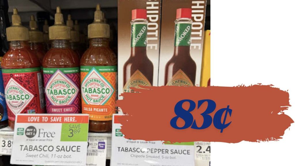 - Tabasco Sauce or Salsa, 5-12 oz starting at, B1G1 at $3.66 ($1.83)