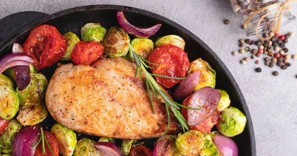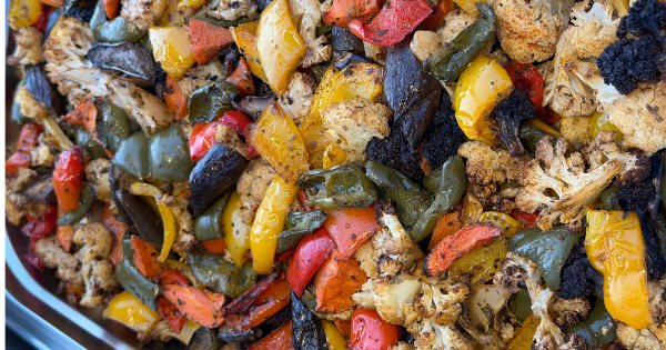I love sheet pan meals because it all goes in the oven together. You could use chicken breasts or thighs for this recipe.