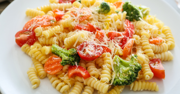 Who doesn’t love pasta? Any vegetables will be delicious combined with warm pasta, and then sprinkle some cheese on top.