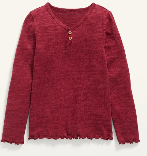 Cozy Slub-Knit Lettuce-Edge Henley T-Shirt for Girls – $4.99 (reg. $17)