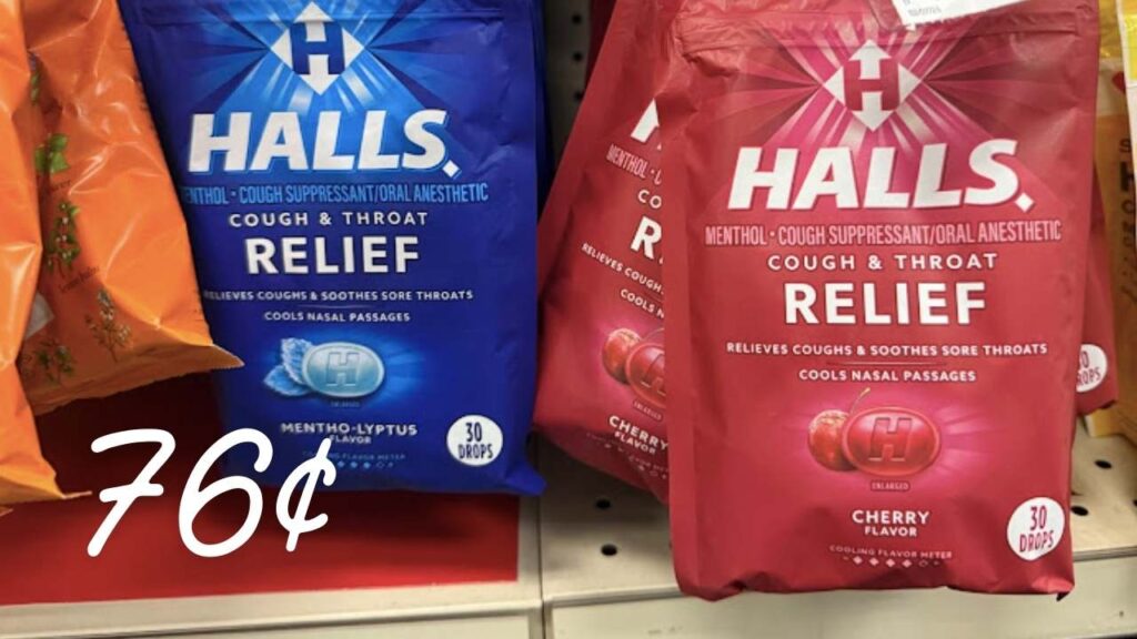 - $2 ECB wyb (2) Halls Cough Drops, B1G1 50% off, limit 1