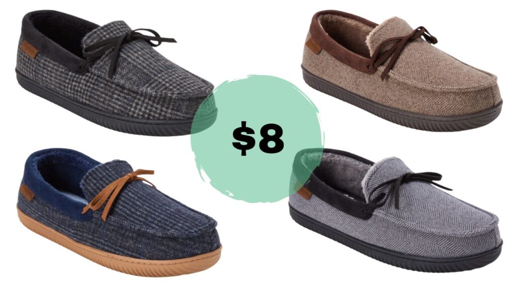 - $8 Men’s Dearfoams Mocassin Slippers at Walmart