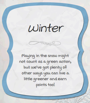 If you are looking for the latest way to earn points for coupons at Recyclebank, don’t miss the “Winter” Section of the Green Your Seasons game. There are a total of 90 new points available for taking various quizzes, pledges and actions.