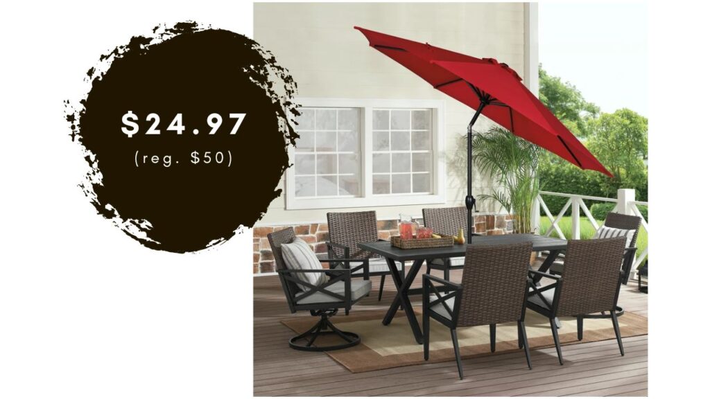 Right now at Walmart get a great deal on this Mainstays 7.5-Foot Tilting Patio Umbrella with Crank. You can get one for just $17.50!