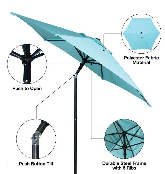 This patio umbrella is available in aqua at this price. Features an easy-open crank and convenient three-way tilt to protect you from the sun’s rays.