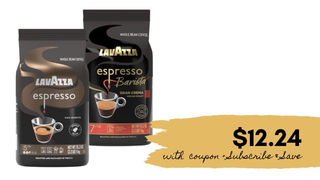 Get a great deal on Lavazza Espresso Whole Bean Coffee bags at Amazon when you combine a coupon offer with Subscribe & Save!