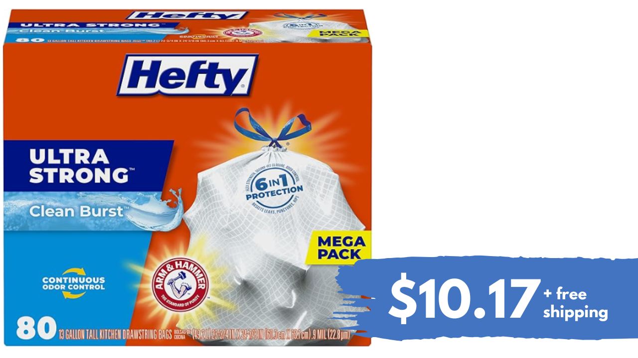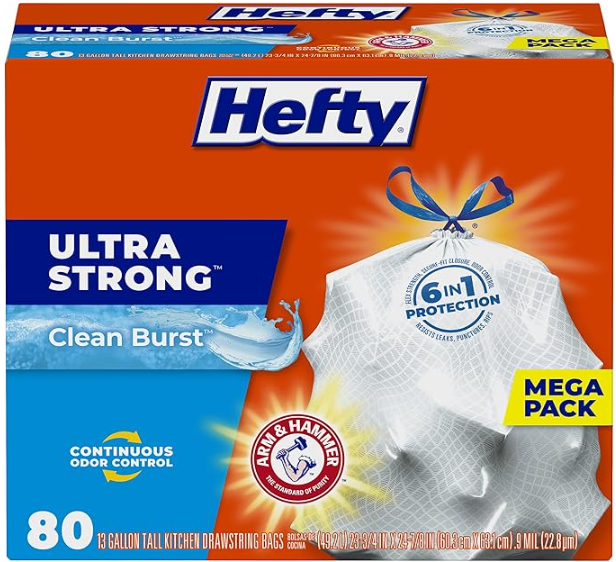 Hefty Ultra Strong 80-Count Kitchen Trash Bags, Clean Burst– $11.97 (reg. $16.98)