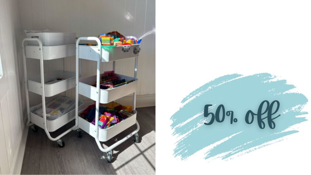 Head to Michaels to score a sweet deal on this 3-Tier Rolling Cart. It’s currently available for 50% off in ten different colors!