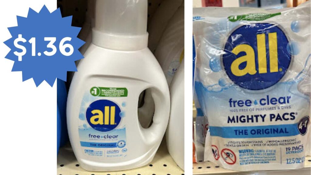 - $3 ECB wyb (2) All Free & Clear 30 oz or Mighty Pacs 19 ct., $4.99, limit 1