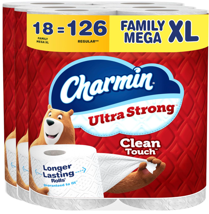 Charmin Ultra Strong Clean Touch Toilet Paper, 18 Family Mega XL Rolls $37,26