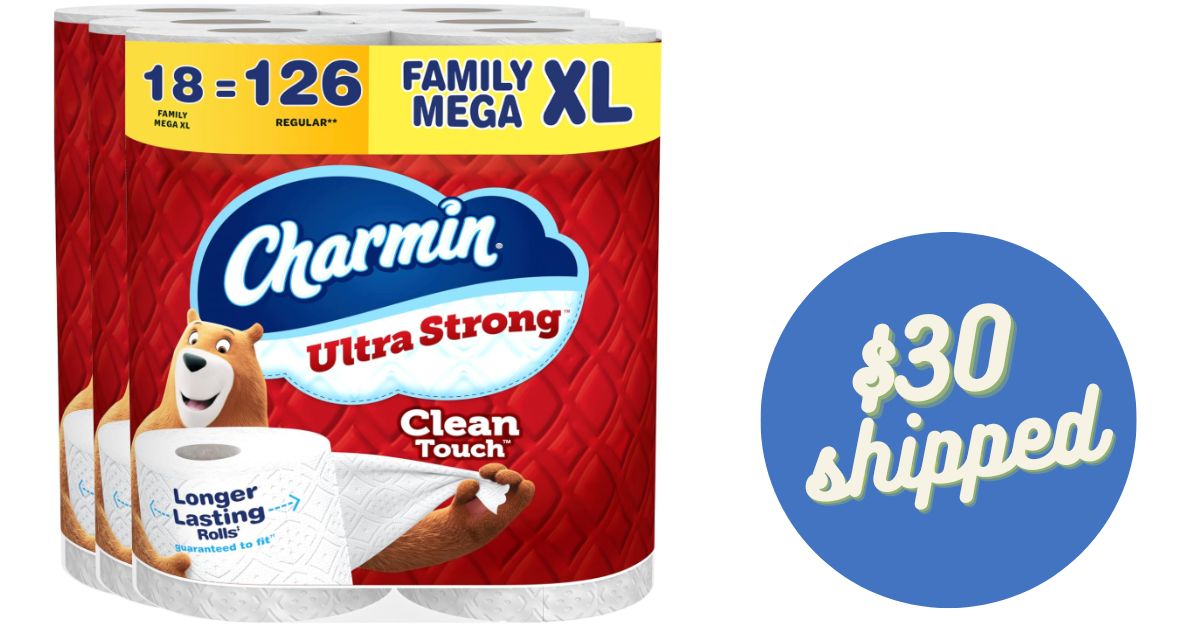 Right now on Amazon, combine a sale price with Subscribe & Save coupon to get Charmin Ultra Family Mega XL Toilet Paper 18-count for just $29.81.