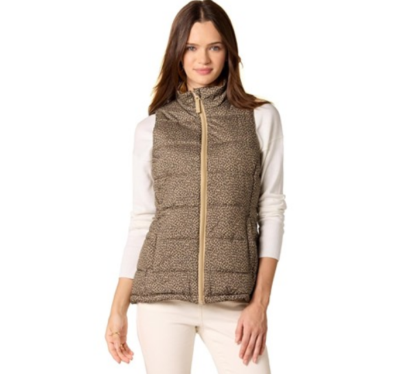 Amazon Essentials Women’s Mid-Weight Puffer Vest, Olive Cheetah/Large – $8.99 (reg. $32.90)