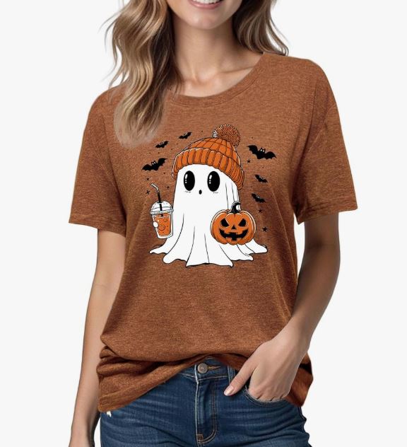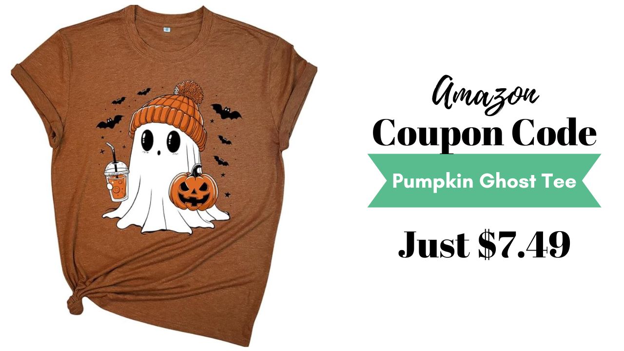 Right now, speed over to Amazon with this coupon code where you can score this adorable pumpkin ghost tee for just $7.49!