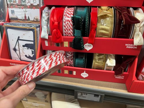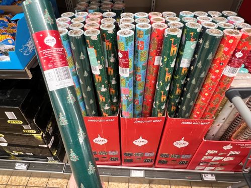 Seriously, speed down to Aldi and get everything you need for wrapping gifts for a fantastic price. They had huge rolls of paper for just $5!