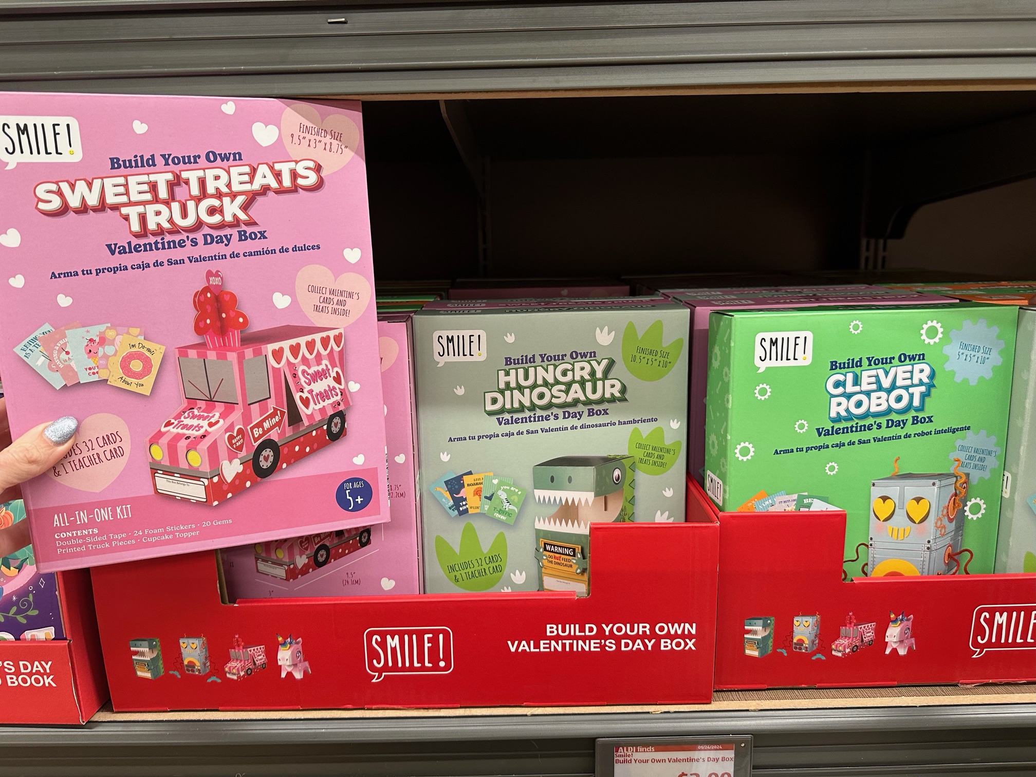 This week at Aldi, they have the coolest Valentine’s box crafts that comes with 32 sharable Valentine’s for just $3.99!