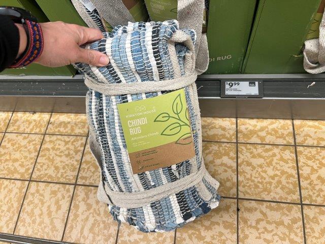 This week at Aldi, transform your outdoor space for less! One of my favorite finds is the 4×5.5′ Chindi rug for just $9.99!