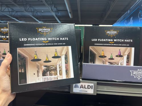 This week at Aldi, find more spooky finds for your home like an LED Pumpkin Neon Sign for $9.99, floating witch hats and more!