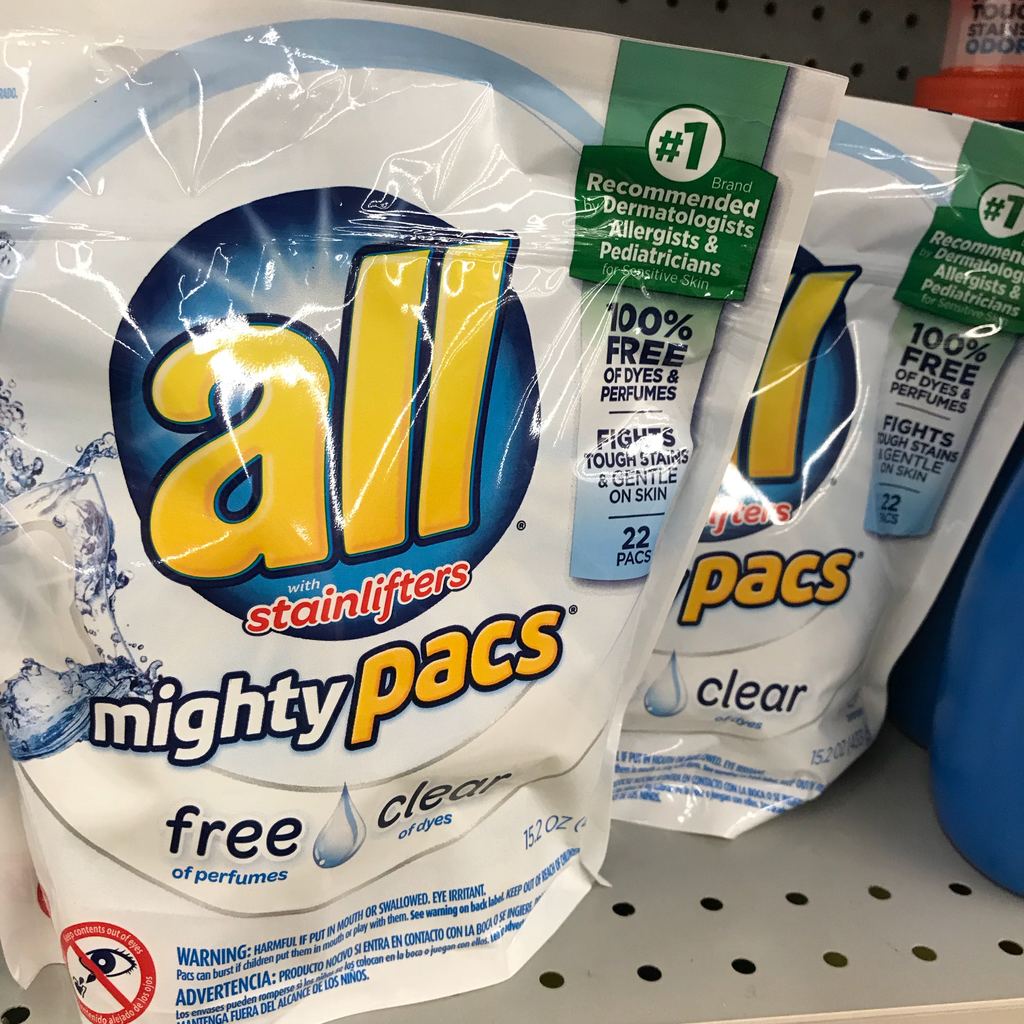 All Liquid Laundry Detergent, Powercore Pacs or Mighty Pacs, 46.5-50 oz or 18-22 pack, $1.99