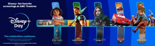 Disney+ Fan-Favorite Screenings at AMC Theaters: From September 8-19, select AMC Theaters will celebrate Disney+ Day with screenings of fan-favorite movies including Walt Disney Animation Studios’ “Encanto”, “Rogue One: A Star Wars Story”, Marvel Studios’ “Thor: Ragnarok,” Disney and Pixar’s “Cars” and “Newsies.” Tickets are $5 per screening and are available to everyone. Attendees will receive a free Disney+ poster, while supplies last. Plus, a special concessions offer will be available for Disney+ subscribers.