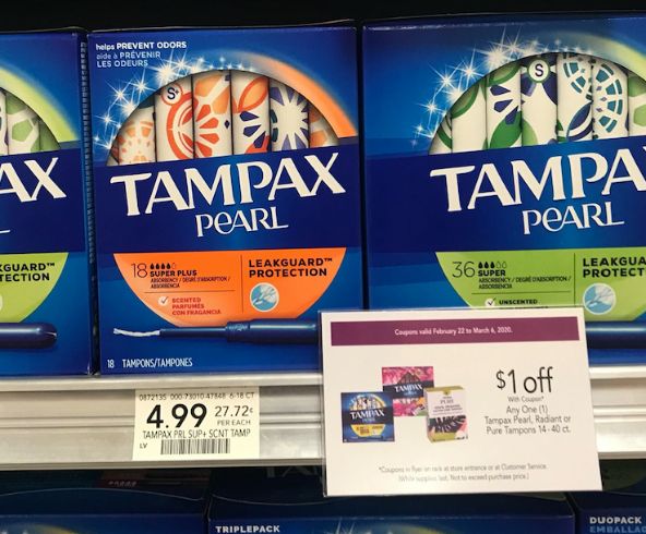 (use store and mfr., makes it $1.99) - Tampax Pearl or Radiant Tampons, 16-18 ct., $4.99