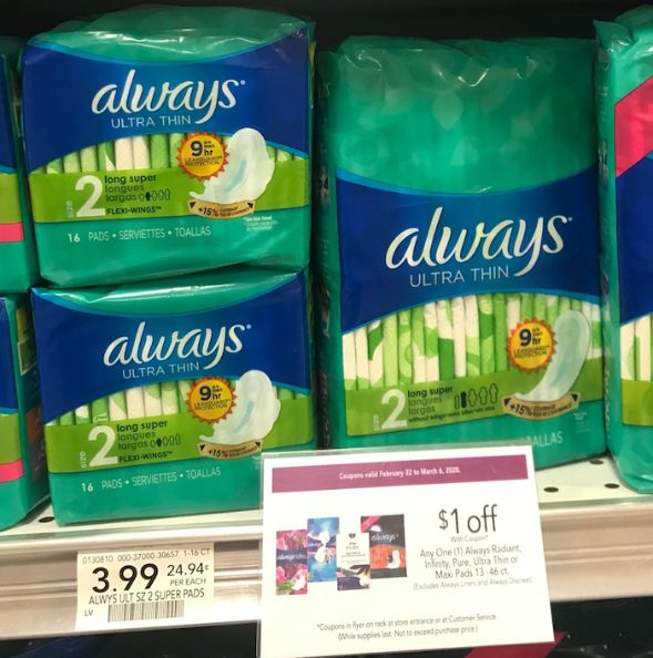 - Always Ultra Thin Pads, 14-24 ct., $3.99
