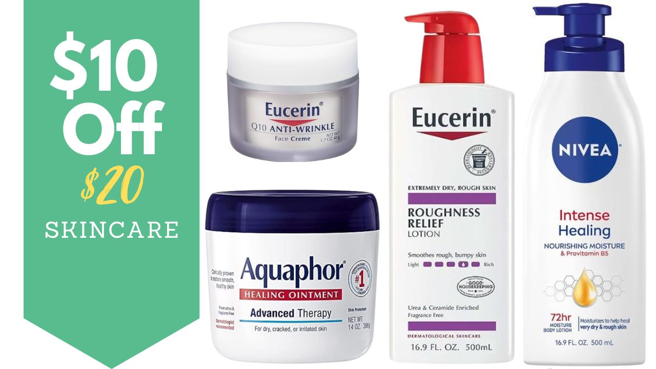 Head to Amazon to get a nice offer on select skincare products. They are offering a $10 credit when you spend $20! Grab products from Eucerin, Aquaphor, Nivea and more!