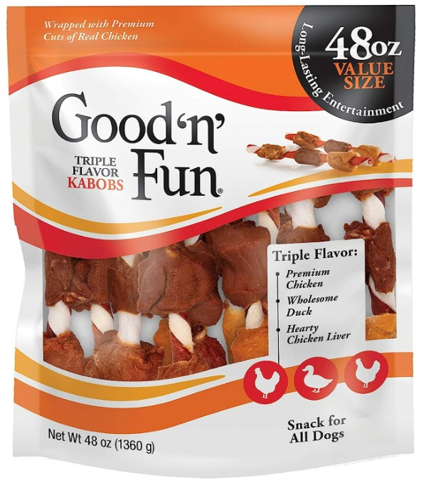 (2) Good’N’Fun Triple Flavored Rawhide Kabobs for Dogs, 48-Oz – $32.99