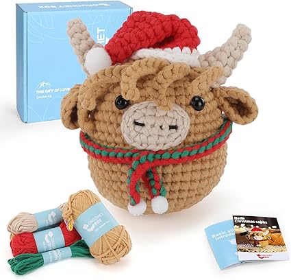 Cudroza Christmas Crochet Kit for Beginners Starter – Christmas Highland Cow – $12.49 (reg. $25)