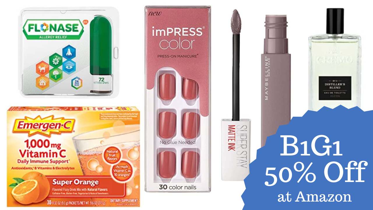 Grab makeup, body lotion, supplements, nail care and more. The lower priced item will be 50% off and the discount will automatically apply at checkout.